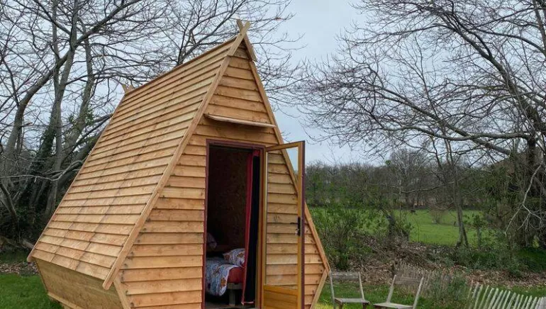 Envie de se ressourcer à la campagne, en pleine nature ? Mais pas forcément envie de déplacer le matériel de camping ? Nous vous proposons notre cotin, une canadienne en bois, 100% normande : bois douglas de la scierie voisine, isolation paille de seigle de la Touche. un lit deux places, deux lits une place, électricité, espace rangement sous le lit. Les lits sont équipés de couettes, oreillers, linge de lit, linge de toilette propres. Un salon de jardin vous est réservé. La cuisine commune est également à votre disposition avec frigo-congélateur, plaque de cuisson, vaisselle, cafetière ...